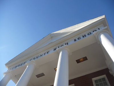 By the school's dedication in February 1955, the columns were stuccoed and gleaming white, as they continue to be today.